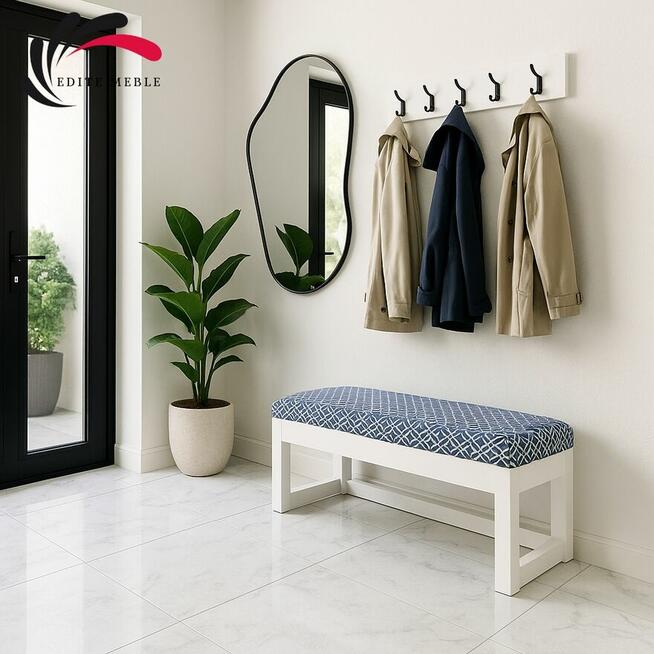 Drewniana, praktyczna ławka tapicerowana na buty z siedziskiem, która dopełni aranżację każdego przedpokoju. Siedzisko ...